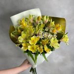 Альстромерия – 7 шт.Матрикария – 2 шт.Фаларис – 10 шт.Упаковка дизайнерская – 1 шт.