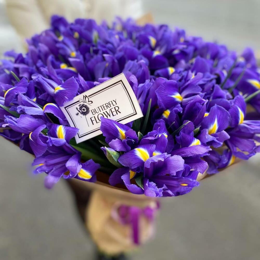 Букет из 75 ирисов в стильной упаковке “Стерлинг”