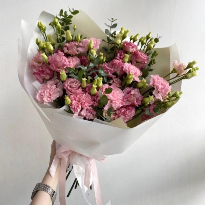Гвоздики, Кустовые розы, Лизиантусы, Пионовидные розы, Розы