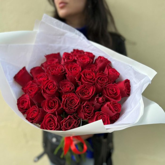 Роза красная одноголовая – 35 шт.