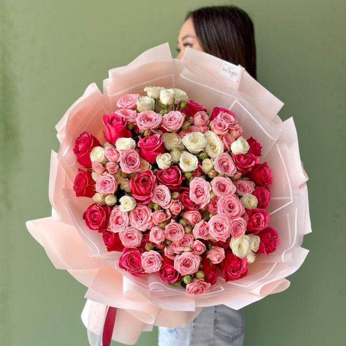 Гвоздики, Кустовые розы, Пионовидные розы, Розы