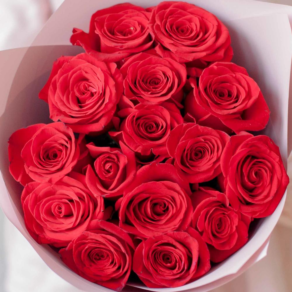 Букет из 15 красных роз (Эквадор) 50 см Freedom в розовой пленке