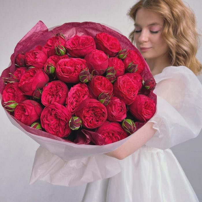 Букет из красных пионовидных роз