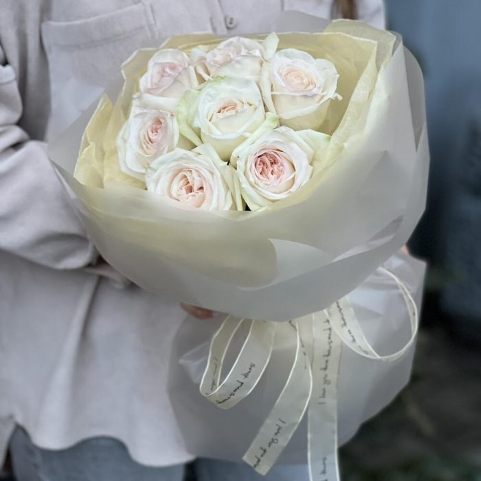 Букет Охара из 7 одноголовых пионовидных роз