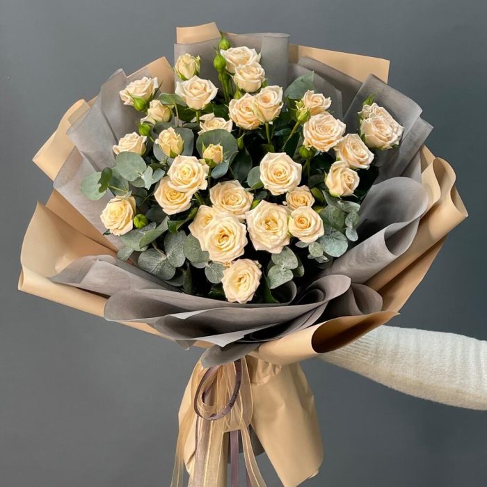 Букет с кустовой розой «Кофейный Маршмэллоу»