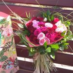 Букет с розами, альстромерией и кустовой розой «Рубин»